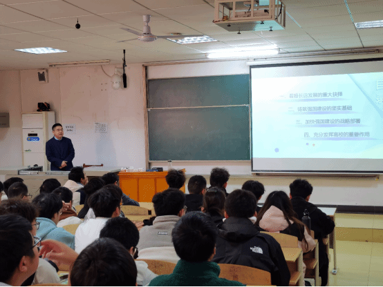 姚校长围绕强国建设中教育、科技、人才三者相辅相成的关系,,,,,,,,我国教育、科技、人才事情已取得的历史性成绩,,,,,,,,建设教育强国、科技强国、人才强国的战略安排和高校在强国建设中的主要作用等四个方面为同砚们教学了党的二十大关于加速建设教育强国、科技强国、人才强国的战略安排的主要内容和深刻意义,,,,,,,,让同砚们熟悉到教育优先生长、科技自主自强、人才引领驱动对周全建设社会主义现代化国家的主要作用和深远影响。。。。。