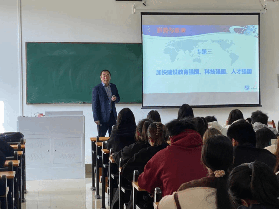 (通讯员 徐肖艺)为贯彻落实《教育部关于增强新时代高校“形势与政策”课建设的若干意见》精神,,,,,,推动党政向导干部上讲台讲“形势与政策”课,,,,,,12月8日下昼,,,,,,校党委常委敖荣军走进2023级应用化学专业学生的课堂,,,,,,为本科生作了题为《加速建设教育强国、科技强国、人才强国》的专题授课。。。。。。。