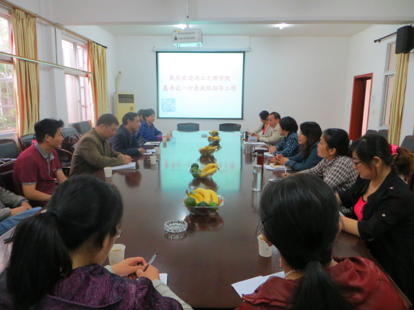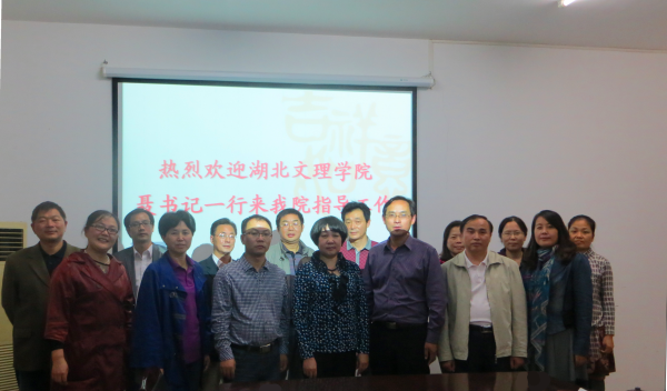 9月22日,,,,,,,,湖北文理学院思政部主任、经政学院党委书记聂军一行十一人到我院考察交流。。。。。。学院党委书记吴秋凤、院长舒先林、副院长何景春、基础教研室贺新芳副教授、原理教研室主任蒋姣蓉副教授及办公室职员加入了交流运动并召开了座谈会。。。。。。