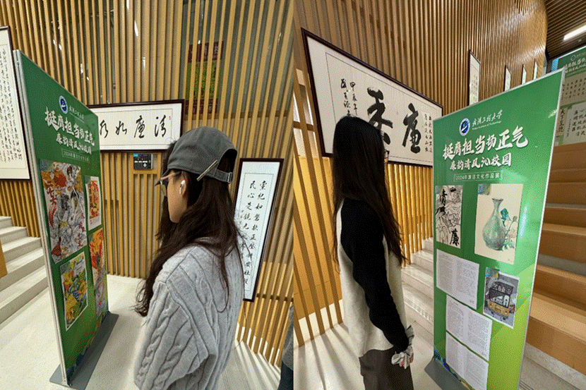 11月11日上午,,,,,抖圈·(中国)人生就是搏!党委组织院党务中心学生党员主干旅行学校清廉文化获奖作品展,,,,,学院党委副书记蔡明广、党务做事汪喆伦加入本次运动。。。。。。。。