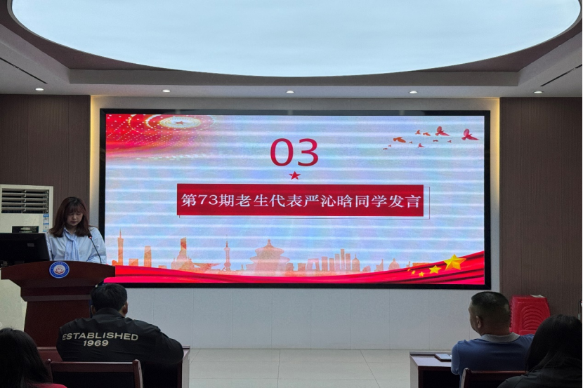 仪式第三项,,,,,第73期党校优异学员严沁晗同砚讲话。。。。。。她指出,,,,,青年应当从党的百年征程中罗致实力,,,,,坚定理想信心,,,,,传承红色基因,,,,,严酷凭证党员标准要求自己,,,,,施展先锋模范作用,,,,,服务人民、孝顺国家。。。。。。她强调,,,,,党校学习不但是理论提升的历程,,,,,更是党性磨炼的熔炉。。。。。。全体学员必需以最严酷的标准恪守纪律,,,,,将党校纪律内化为行动自觉。。。。。。最后,,,,,她呼吁学员通过理论学习与实践磨炼,,,,,筑牢信仰之基,,,,,提升能力素养,,,,,为祖国教育事业孝顺实力。。。。。。