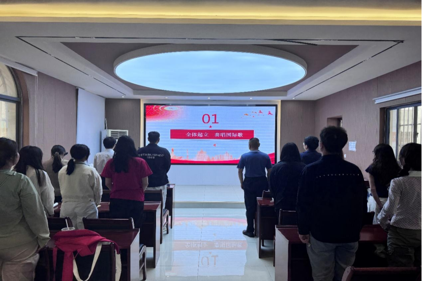 仪式第一项,,,,,全体起立,,,,,奏唱国际歌,,,,,激昂的旋律中,,,,,开班仪式正式拉开帷幕。。。。。。