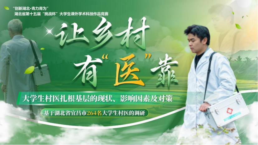 我院获奖项目聚焦“大学生村医扎基本层”这一要害议题,,,,,通过对湖北省宜昌市264名大学生村医的深度调研,,,,,系统剖析了下层医疗人才留存的现状、影响因素,,,,,并提出针对性对策。。。。。。。。项目从选题到落地,,,,,凝聚了团队成员的心血与智慧——徐嘉婧、张思雨、赵超亚、邓佳琪、汪艺佳、戴立、李晓宇、柯宁八位同砚历时数月,,,,,深入一线走访、网络数据、撰写报告,,,,,在余伟斌、王威、汪喆伦三位先生的悉心指导下,,,,,最终形成了兼具实践价值与学术深度的研究效果。。。。。。。。