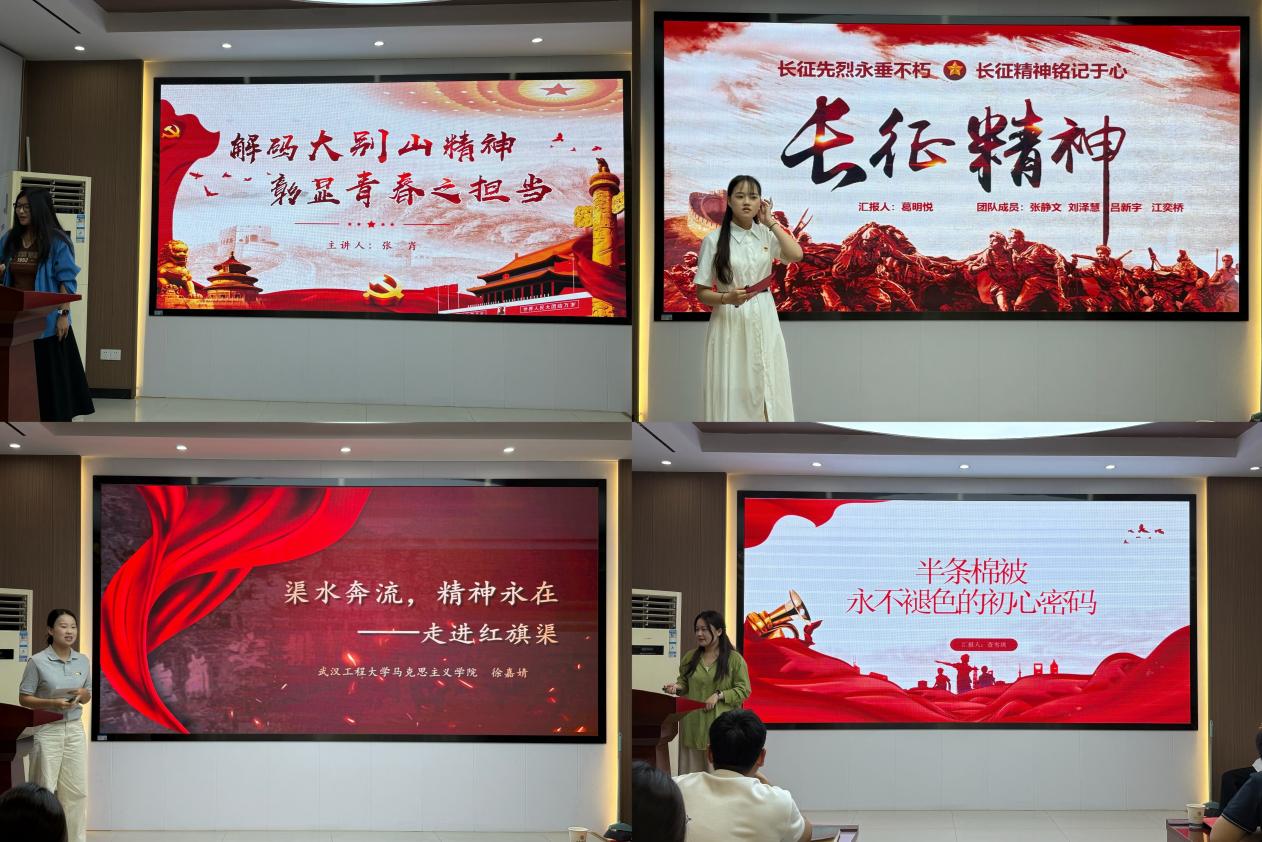 张肖团队叙述了大别山精神的富厚内在,,,,,,,,强调其是共产党人和人民群众在革命斗争中铸就的名贵精神财产。。。。。。。。葛明悦的微党课围绕长征睁开,,,,,,,,招呼马院学生讲好长征故事。。。。。。。。徐嘉婧讲述了红旗渠修建的配景、历程、乐成缘故原由及精神内在,,,,,,,,激励今世青年传承这些品质。。。。。。。。查雪琪主要陈述了“半条棉被”的故事,,,,,,,,激励新时代党员干部在各方面践行初心使命,,,,,,,,继续斗争。。。。。。。。