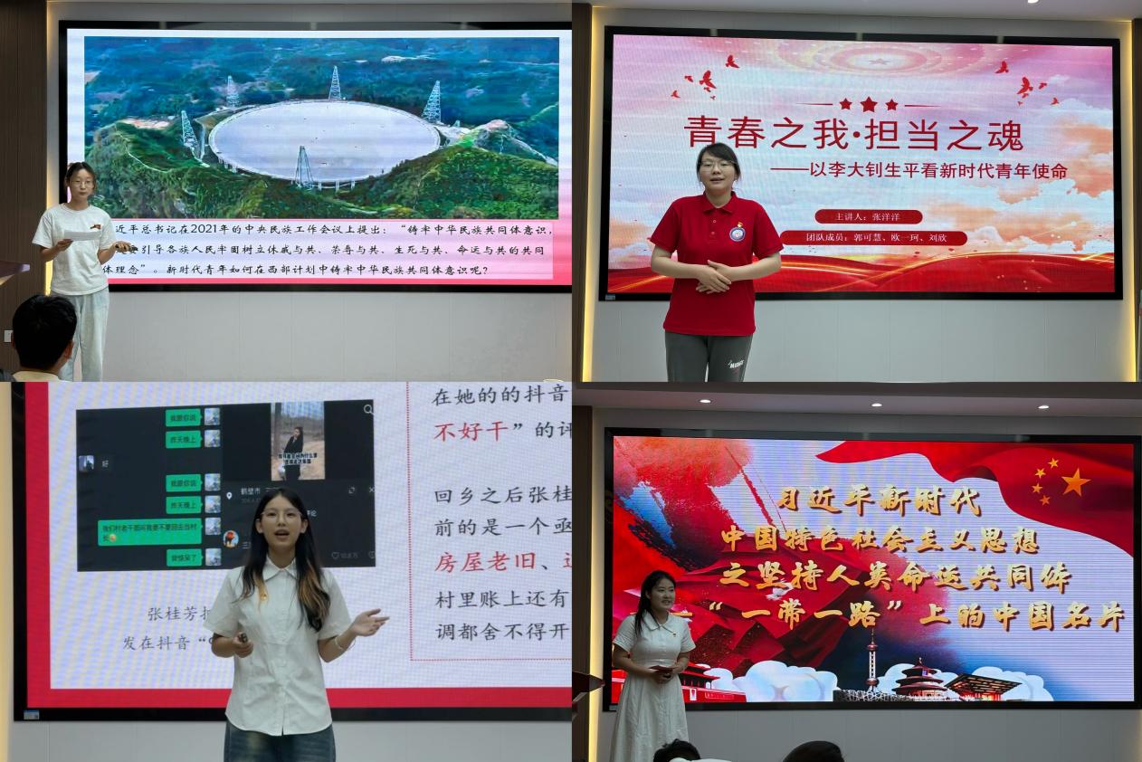 李娟从西部妄想的意义、坚守与共识三方面探讨了新时代青年怎样通过西部妄想铸牢中华民族配合体意识。。。。。。。。张洋洋回首了李大钊的生平事迹,,,,,,,,激励新时代青年心怀天下、脚扎实地。。。。。。。。刘子凤则以“青春赴乡野 热血绘新颜”为题,,,,,,,,讲述了95后村支书张桂芳及自身加入实践运动的故事。。。。。。。。吕新宇以“习近平新时代中国特色社会主义头脑之坚持人类运气配合体——‘一带一起’上的中国手刺”为主题,,,,,,,,呼吁青年要孝顺青春实力。。。。。。。。