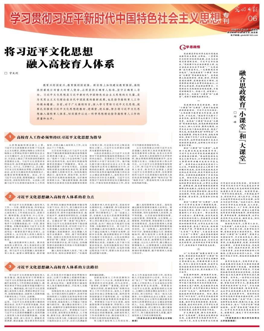 ±¾ÍøÑ¶£¨Í¨Ñ¶Ô± Ùܾý«]£©ÎÒÔºÎ÷ϯÇñ·åÔÚ¡¶×ÆË¸ÈÕ±¨¡·£¨2025Äê8ÔÂ21ÈÕ06°æ£©ÉϽÒÏþÀíÂÛÎÄÕ¡¶ÈÚºÏ˼Õþ½ÌÓý¡°Ð¡¿ÎÌᱺ͡°´ó¿ÎÌᱡ·¡£¡£¡£¡£¡£