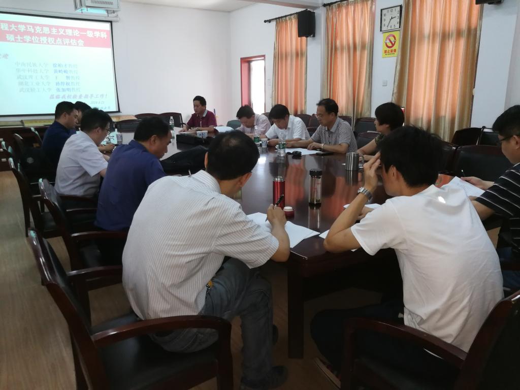 6月21日下昼,,,,,,我校马克思主义理论一级学科硕士授权点举行专家组现场审核评估聚会。。。。。。。。专家组由中南民族大学原党委副书记徐柏才教授、华中科技大学抖圈·(中国)人生就是搏!院长黄岭峻教授、武汉理工大学抖圈·(中国)人生就是搏!副院长王智教授、湖北工业大学抖圈·(中国)人生就是搏!院长孙厚权教授和武汉轻工大学抖圈·(中国)人生就是搏!院长张加明教授等5人组成,,,,,,徐柏才教授担当专家组组长。。。。。。。。