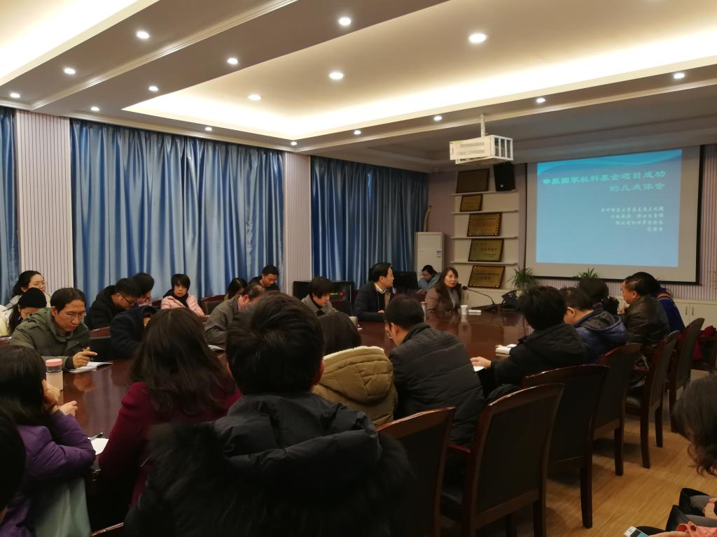 12月20日下昼,,,,,,,,华中师范大学博士生导师、湖北省伦理学学会会长龙静云教授应邀莅临我院作了题为“申报国家社科基金项目的几点体会”的学术报告。。。。。。报告会由学院院长舒先林教授主持,,,,,,,,学院西席和研究生加入了本次学术交流运动。。。。。。