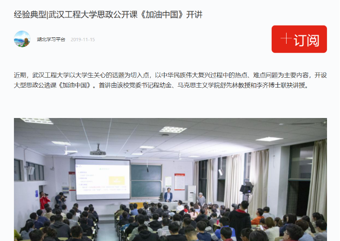 2019Äê10ÔÂ30ÈÕÍí£¬£¬£¬£¬£¬£¬£¬Î人¹¤³Ì´óѧ´óÐÍ˼Õþ¹«Ñ¡¿Î¡¶¼ÓÓÍÖйú¡·ÔÚL4204¿ÎÌÿª½²¡£¡£¡£¡£¡£Ñ§Ð£µ³Î¯Êé¼Ç³ÌÓ×½ð¿ªÆôµÚÒ»¿Î¡£¡£¡£¡£¡£