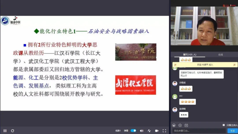 2020年7月4日晚,,,,,,,由长江大学抖圈·(中国)人生就是搏!主理 ,,,,,,,人民网果真课协办,,,,,,,华中科技大学抖圈·(中国)人生就是搏!、湖北经济学院抖圈·(中国)人生就是搏!、抖圈·(中国)人生就是搏!、湖北科技学院抖圈·(中国)人生就是搏!、黄岭峻事情室及文华在线教育六家单位承办的湖北省第二届“新时代高校思政金课建设”钻研与交流周系列运动之湖北高校“中国系列”思政选修课第四次专题讲座以人民网果真课的方法乐成举行。。。。。。。。本次讲座的主讲人为抖圈·(中国)人生就是搏!党委书记、国家精品视频果真课《谁来给中国“加油”——中国石油清静的逆境与出路》主讲人、“加油中国”课程认真人舒先林教授,,,,,,,讲座主题为“怎样将行业特色融入思政课?????——以武汉工程大学‘加油中国’为例”。。。。。。。。