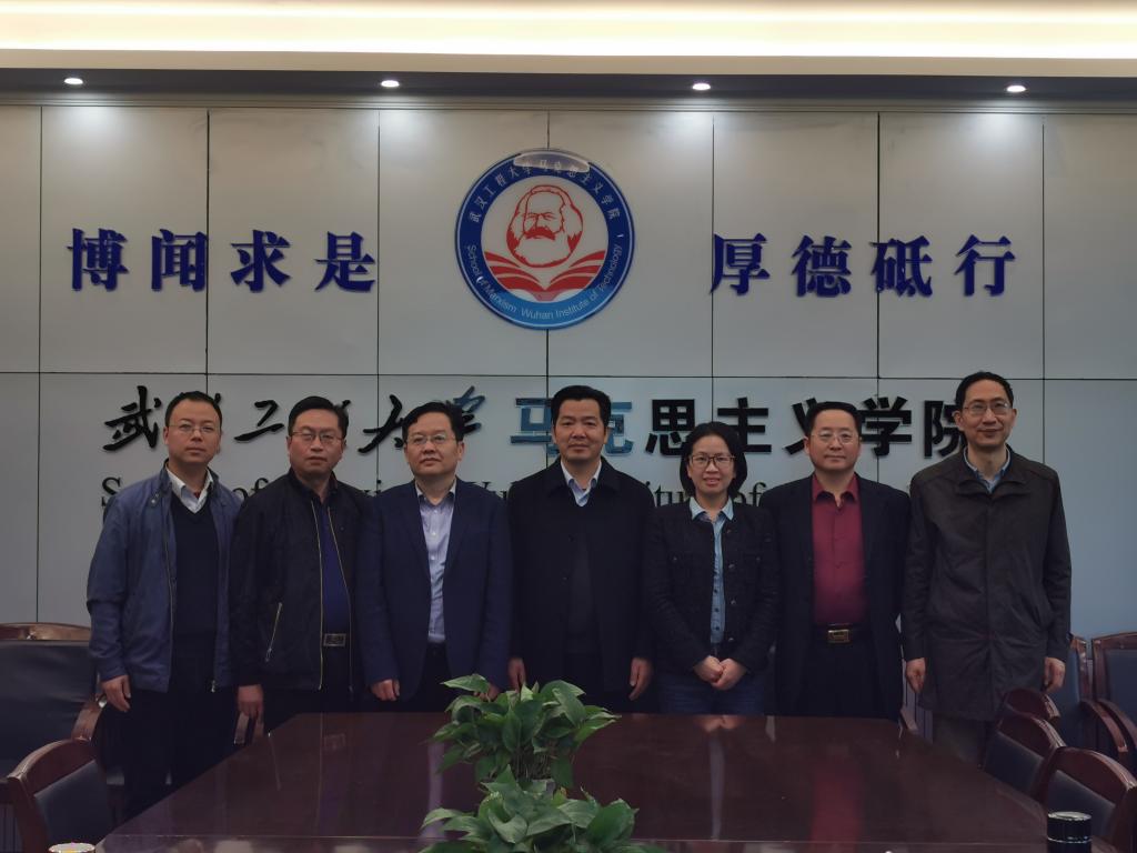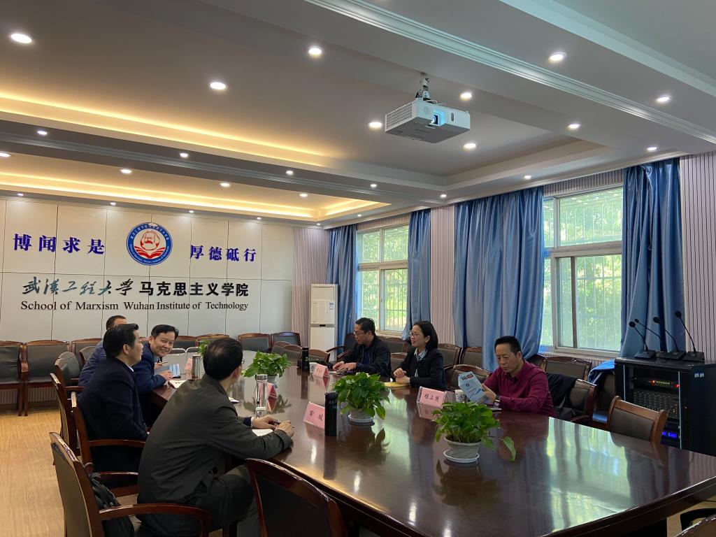 3月25日下昼,,,,,,,湖北科技学院抖圈·(中国)人生就是搏!院长刘侣萍教授一行来我院考察、交流大学生思政课建设和马克思主义理论一级学科建设情形。。。。。。本次交流运动由院长曹胜亮教授主持,,,,,,,学院党委书记舒先林教授、副院长常城、金诗灿等加入了交流会。。。。。。