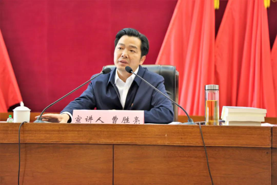 (通讯员:沈洁)4月27日,,,,,,,我校抖圈·(中国)人生就是搏!院长、教授、博士生导师曹胜亮应鄂州市临空经济区约请作专题宣讲暨整体学习运动。。。。。。。。临空经济区党工委、鄂州临空集团公司向导班子成员、全区副科级以上干部及各村(社区)党支部书记加入整体学习。。。。。。。。鄂州市委常委、常务副市长、临空经济区党工委书记李忠禄主持宣讲运动。。。。。。。。