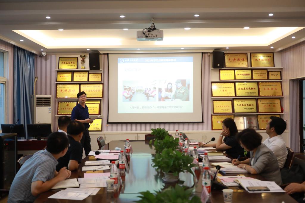王威向与会向导嘉宾汇报我校2021年树模点事情情形及“五送”计划的制订和落真相形。。。。。。。。