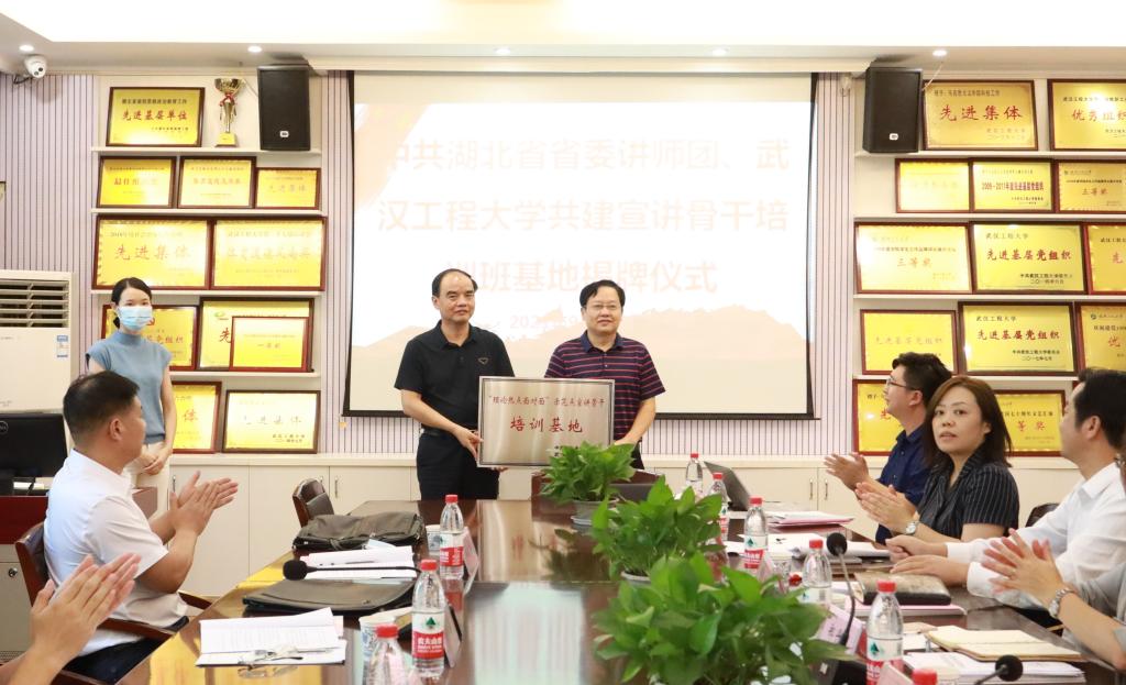 随后,,,,,,,举行中共湖北省委讲师团、武汉工程大学共建宣讲主干培训基地的授牌仪式。。。。。。。。在省校向导、嘉宾的见证下,,,,,,,舒先林从胡秋春手中接过“沉甸甸”的牌匾。。。。。。。。