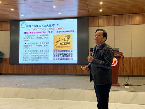 随后舒先林教授从三个维度为各人解读了何谓“百年未有之大变局”,,,,,,,,第一维度是时间意义上的“百年”,,,,,,,,是虚指而非实指,,,,,,,,第二维度是空间意义的上“天下”,,,,,,,,指受中国影响的天下,,,,,,,,第三维度是历史变迁意义的“大变局”,,,,,,,,即天下生长时势。。。。。。。。紧接着他从全球视野向同砚们解说了大变局的详细体现,,,,,,,,第一个方面是国际政治多极化之变百年未有,,,,,,,,天下实力比照泛起“东升西降”“新升老降”;;;;;;;第二个方面从天下经济角度阐释经济全球化之变百年未有,,,,,,,,主要体现在二战以来经济全球化带来天下经济活跃和昌盛,,,,,,,,近年一股逆全球化潮流在美国等蓬勃国家涌现;;;;;;;第三个方面是人类文明多元化之变百年未有,,,,,,,,种种文明相互激荡;;;;;;;第四个方面是社会生长智能化之变,,,,,,,,以科技生长的奇异视角向同砚们展示人工智能引起的巨变;;;;;;;最后一个方面是全球治理民主化之变,,,,,,,,已往百年主要由西方掌控国际规则和全球治理权,,,,,,,,随着新兴经济体群体崛起助推全球治理民主化。。。。。。。。