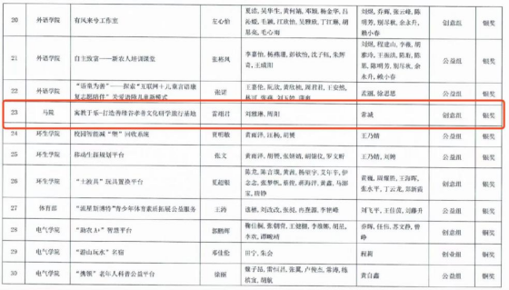 马院21级硕士研究生雷翊君向导硕士研究生刘雅琳、周阳,,,,,,以寓教于乐—打造善缘谷孝善文化研学旅行基地为主题,,,,,,旨在响应墟落振兴政策,,,,,,开发墟落旅游项目,,,,,,打造咸宁地区“研学旅行”特色基地,,,,,,该项目在青年红色筑梦之旅赛道荣获校级银奖。。。。。。。(审稿人:常城)