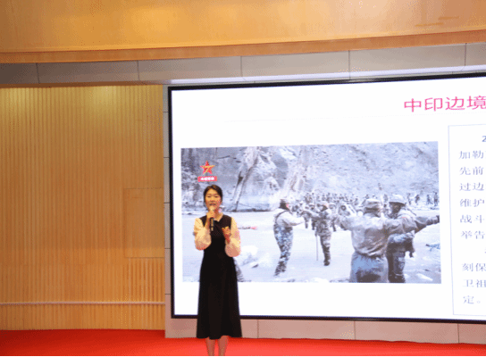 刘蜜以《向实现建军一百年斗争目的迈进》为主题,,,,,解读了建军一百年斗争目的,,,,,叙述了为什么要推进国防和军队现代化建设,,,,,以图文并茂的形式展示了新时代以来的强军效果。。。。。。。。