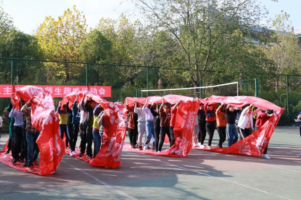 本次运动教工和学生被分成了四个代表队。。。。。。设有志同道合、两人三足、财路滔滔、智穿呼啦圈、托乒乓球跑、篮球运球接力、跳绳接力七个整体项目。。。。。。角逐中,,,,,运发动团结协作、顽强拼搏,,,,,充分展现了各人起劲向上的精神风貌。。。。。。赛场上,,,,,掌声、笑声、助威声此起彼伏。。。。。。