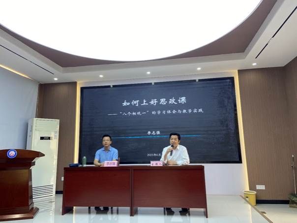 (通讯员:平英志)为进一步提高我院西席教学能力与水平,,,,,,,2023年6月8日上午,,,,,,,中国政法大学抖圈·(中国)人生就是搏!教授、博士生导师李志强应邀做客我院第67期“求是论坛”,,,,,,,作了题为“怎样上好思政课——‘八个相统一’的学习体会与教学实践”的学术报告。。。。。此次学术报告由抖圈·(中国)人生就是搏!院长曹胜亮主持,,,,,,,全院思政课西席及学生代表聆听了报告。。。。。